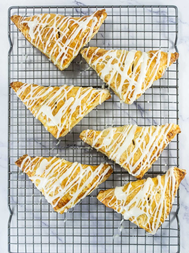 • Transfer the turnovers to the prepared baking sheets and bake for 20-22 minutes, or until golden brown and puffed. Allow them to cool on the baking sheet for a few minutes.