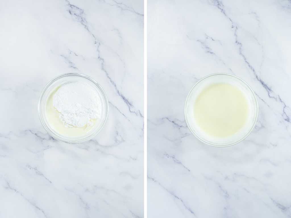 8. While the turnovers cool, make the glaze: whisk the powdered sugar and heavy cream in a small bowl until smooth.