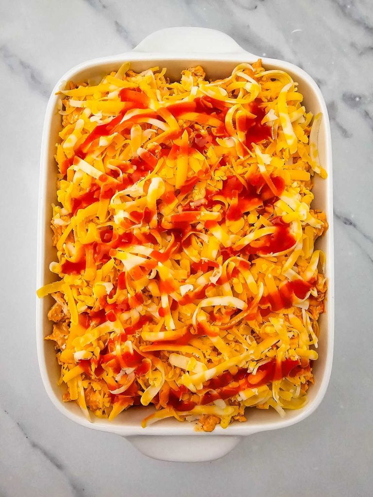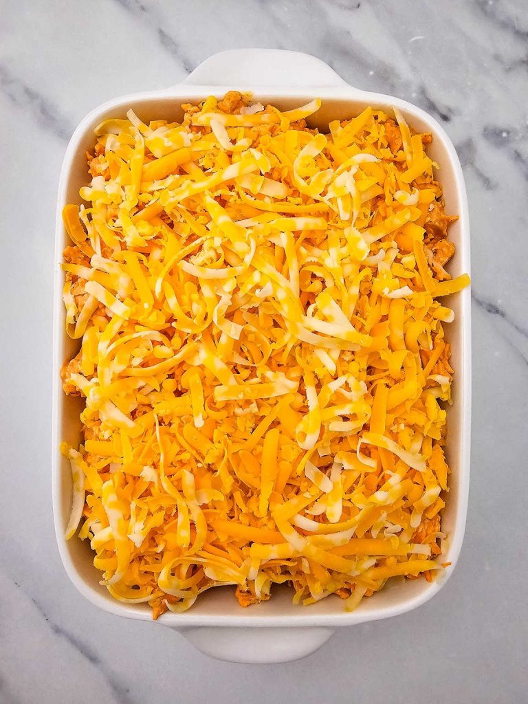 • Sprinkle the reserved cheddar and Colby Jack cheese evenly over the top.