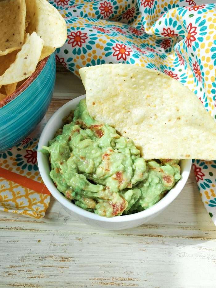 2 Ingredient Guacamole Recipe is made with ripe avocado and diced tomato for a quick and simple homemade dip. It’s fresh, creamy, and perfect for serving with chips or alongside tacos and party foods.