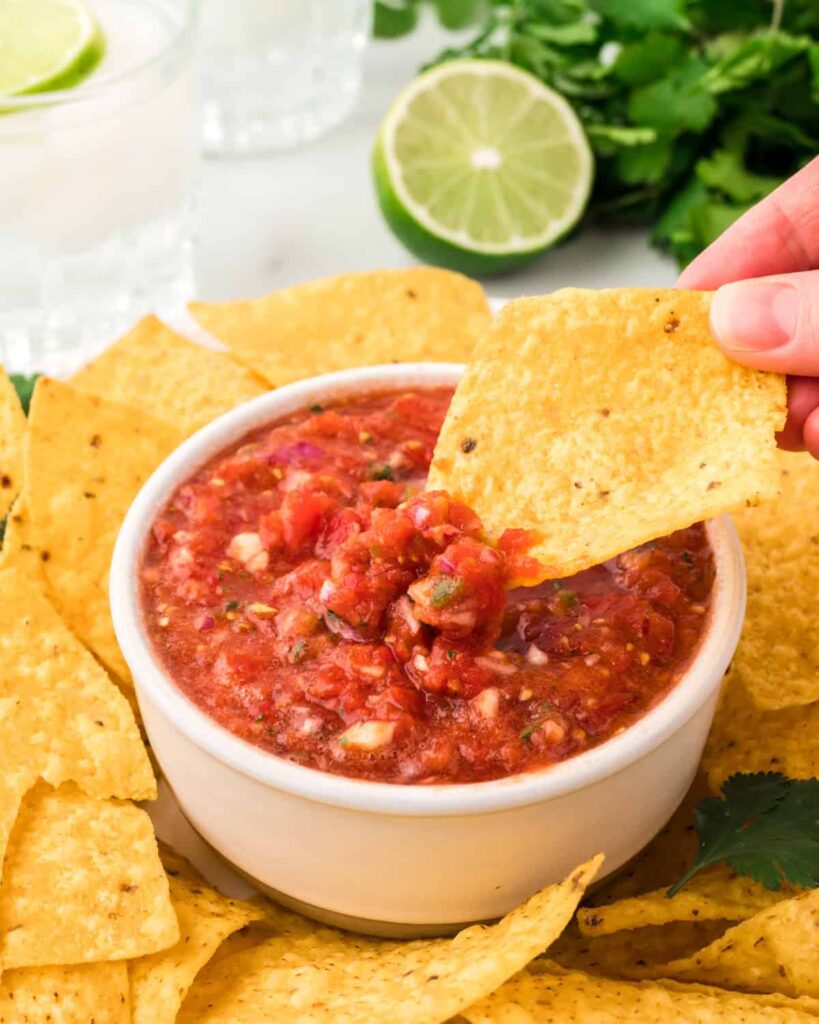 Pico de Gallo is made with fresh tomatoes, onion, cilantro, lime juice, and jalapeño for a classic chunky salsa. It’s bright, fresh, and perfect for topping tacos, dipping with chips, or serving alongside grilled dishes.