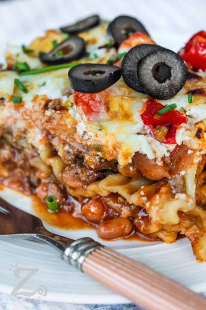 Mexican Lasagna layers tortillas with seasoned meat, salsa, beans, and cheese, then bakes until hot and bubbly. It’s rich, cheesy, and perfect as a hearty party main or crowd‑pleasing dinner.