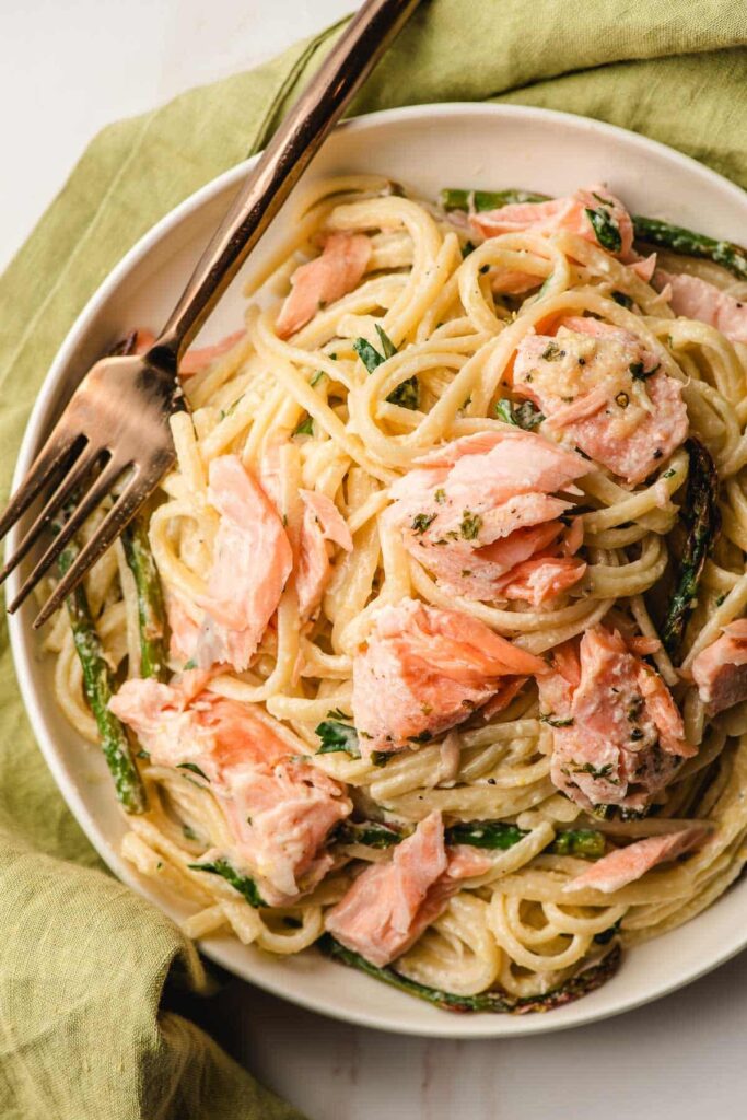 Creamy Salmon Linguine is a simple pasta dinner with tender salmon and crisp spring asparagus. It’s easy to make and brings bright, fresh flavor to your weeknight table.