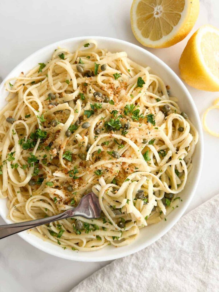 Lemon Caper Pasta is bright and zesty with fresh lemon and tangy capers in every bite. It makes a simple spring dinner that’s full of bold, fresh flavors.