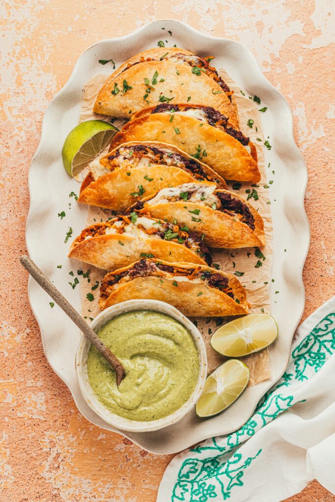 Crispy Black Bean and Sweet Potato Tacos are hearty and flavorful with seasoned roasted sweet potatoes and crisp black beans tucked into warm tortillas. Topped with fresh slaw and tangy lime crema, they deliver a satisfying blend of savory, sweet, and bright flavors in every bite.